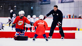 Der Sommer hält Einzug, die Temperaturen steigen, und dennoch herrscht in der Red Bull Eishockey Akademie Hochbetrieb. Zumindest am letzten Wochenende, als der komplette Nachwuchs des EC Red Bull Salzburg von U8 bis U13 sowohl auf als auch neben dem Eis ein Trainingslager absolviert hat. Initiiert von Andrei Lavrov, Head Coach des U17 Red Bull Eishockey Akademieteams, trafen sich seit dem Saisonende nun schon zum zweiten Mal über 100 Kinder zum gemeinsamen (Eis-) Training.
