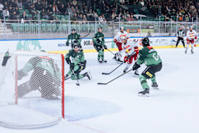 So ging es auch in den Schlussabschnitt rein. Es ging auf und ab, abwechselnd setzten sich beide Teams in der Angriffszone fest und schrammten einige Male nur knapp am Tor vorbei. In der 51. Minute wurde Ziga Pance auf die Reise geschickt und traf auf seinen eigenen Rebound im Nachschuss zur Führung der Hausherren (51.). Jetzt warfen die Red Bulls noch mehr alles nach vorn, Ljubljana blieb mit Kontern gefährlich, wurde aber immer abgefangen. Mit sechs Feldspielern gelang den Salzburgern dann tatsächlich der verdiente Ausgleich, Connor Corcorans Distanzschuss war nicht zu sehen und zu halten (58.) und führte in die Verlängerung. Die dauerte dann allerdings nur elf Sekunden, T.J. Brennan traf aus vollem Lauf ins Kreuzeck und sicherte den Slowenen den zweiten Punkt. Die Red Bulls, die dem Tabellenführer einen großen Kampf lieferten, konnten zumindest einen Punkt mitnehmen.