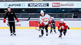 Nach einer kurzen Begrüßung und dem gemeinsamen Umziehen ging es für die Kinder direkt aufs Eis. Unter der Leitung von Manuel Latusa und den Nachwuchstrainern wurden erste Bewegungsabläufe, einfache Übungen und grundlegende Techniken vermittelt. Die jungen Teilnehmer zeigten von Beginn an große Begeisterung und machten rasch Fortschritte. Für zusätzliche Motivation sorgte der Besuch weiterer Spieler des EC Red Bull Salzburg, die die Übungen begleiteten und den Kindern mit Tipps und Unterstützung zur Seite standen.