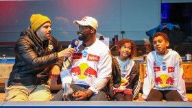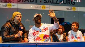 As part of his stay in Salzburg - the Red Bull athlete was also invited to a Red Bull Athlete Talk at the Red Bull Base in Elsbethen - he took the time to meet the Red Bulls team in the dressing room on Wednesday and give the boys new inspiration with his comments.