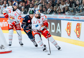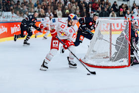 It was pure enthusiasm. The eagerly anticipated clash between the Austrian and German champions – a duel between two teams with limited personnel – turned into an intense battle in which Salzburg finally capitalized on their scoring opportunities at the right time and, especially in the final period, were able to rely on their defensive qualities against Berlin's offensive onslaught. In the end, the Red Bulls celebrated a decisive victory with 3,400 fans in the sold-out Salzburg Ice Arena, thus qualifying for the CHL playoff round of 16. | Match report
