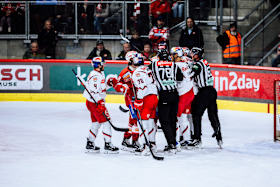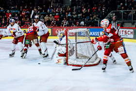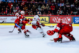 Right from the start, the atmosphere on the ice was electric. Both teams came out firing, and Salzburg's goalie, Atte Tolvanen, was kept busy early on. After a few minutes, the game settled down a bit, but the pace remained relentlessly high. KAC had slightly more of the possession, although clear scoring chances were scarce on both sides due to the tight defensive formations. The Red Bulls were twice penalized, but defended very effectively. The teams went into the locker rooms scoreless after 20 minutes, but even so, it was a highly exciting hockey game.
